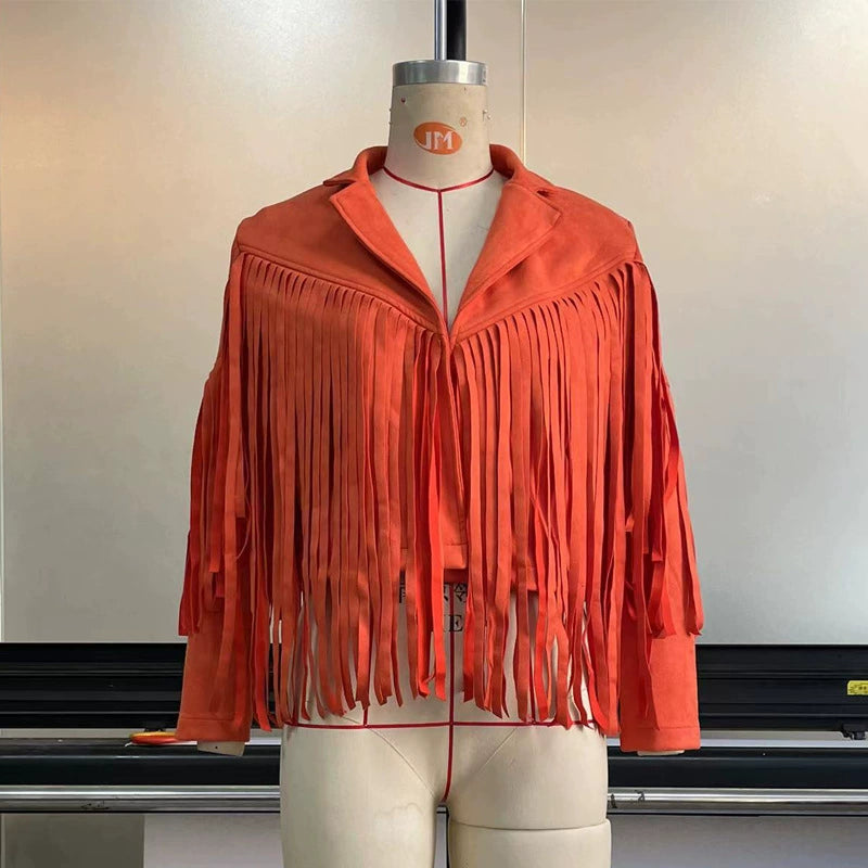 Be the star of the show with this bold, western-style faux leather tinsel jacket! Perfect for the fall season, it comes in 3 daring colors - orange, beige, and black - to keep you at the edge of fashion. Take a risk and let your style shine!
