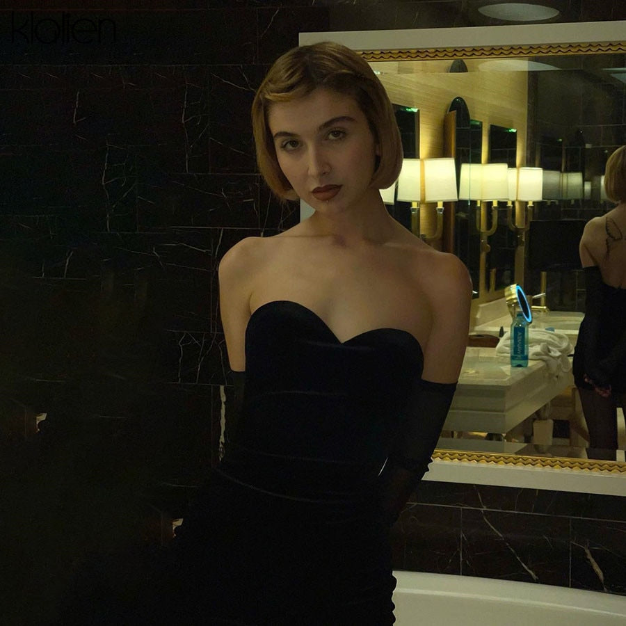 Trendy Strapless Long Sleeve Black Mesh Dress