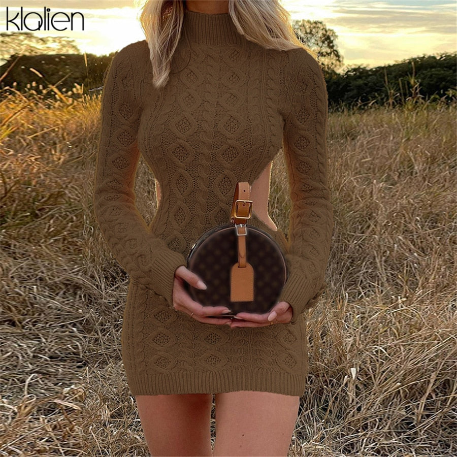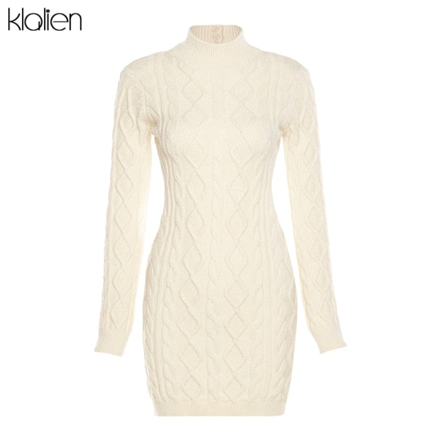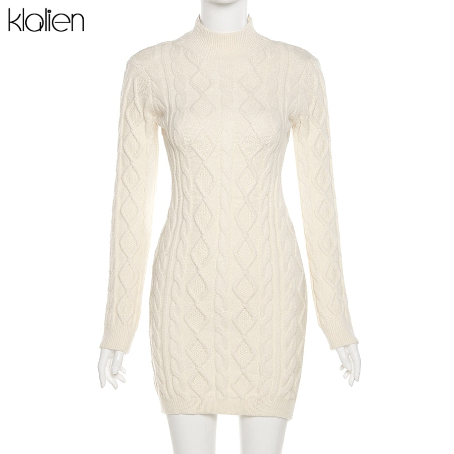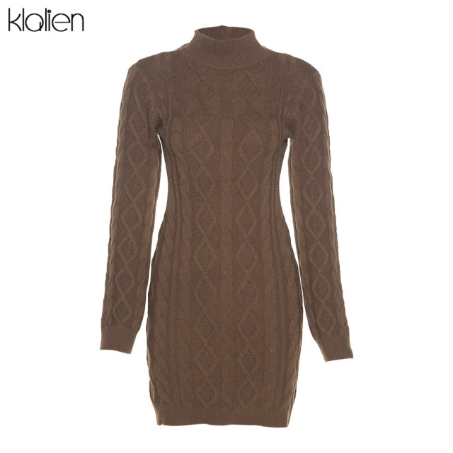 Trendy Long Sleeve Turtleneck Sweater Dress