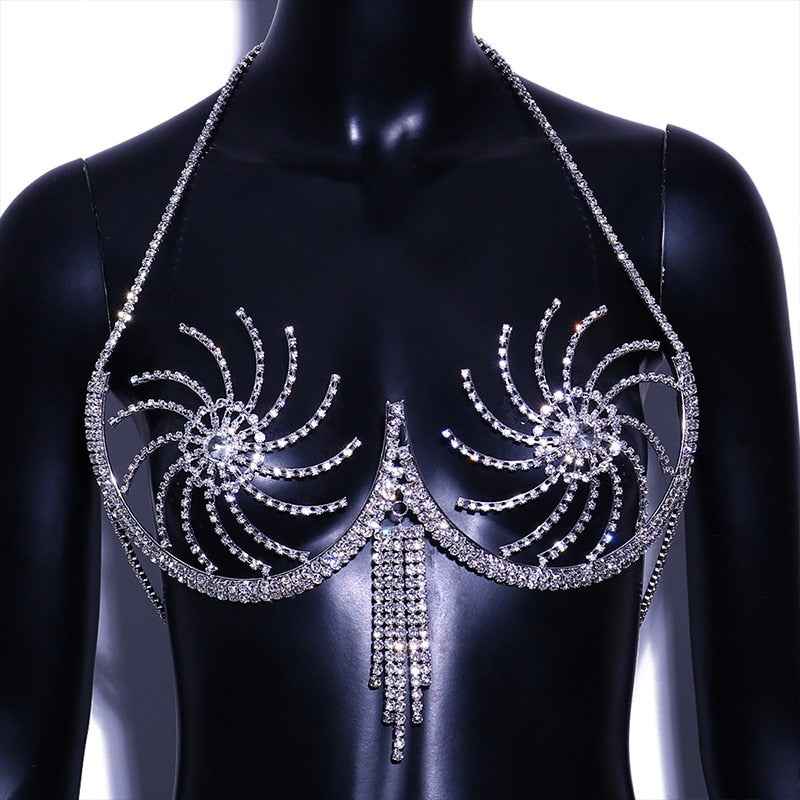 Make a statement with this Trendy Tassel Chain Bikini Lingerie Bra! Crafted from copper, crystals, and trend-forward style, this eye-catching piece will have all eyes on you as you dance around like royalty. Wear it and look at me when I'm talking to you!
