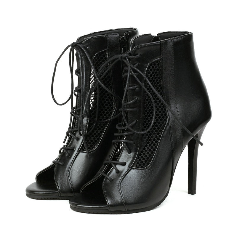 Trendy Lace Up High Heels With Open Toe Zipper