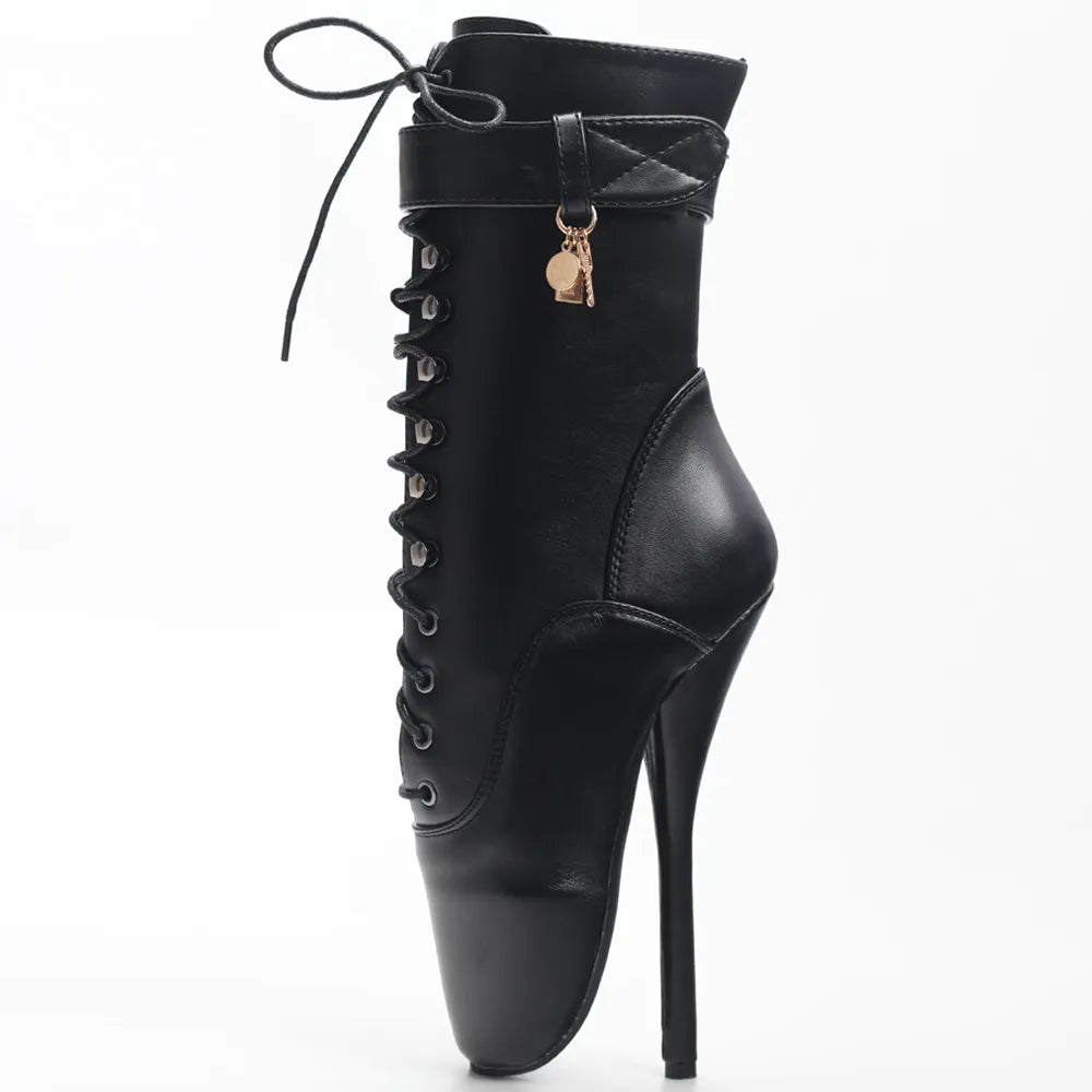 Be fashionably fierce in these lace-up ballet ankle boots with thin heels and solid pattern. The super high heel (8cm and up) and round toe add a touch of sexiness, while the zip closure makes them easy to slip on and off. Made with quality materials, these boots are sure to make a statement.