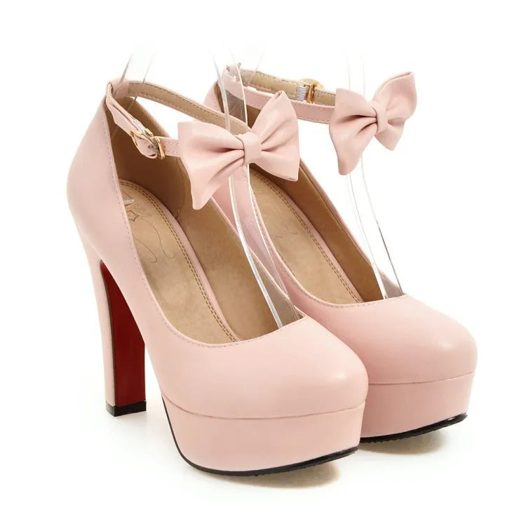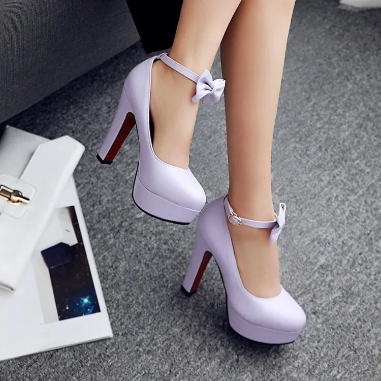 Elevate your fashion game with these Trendy Mary Jane Bowtie High Heels! Featuring a round toe, square heel, and playful butterfly-knot detail, these pumps are both fashionable and comfortable with the added platform for support. Step out in style with these trendy pumps!