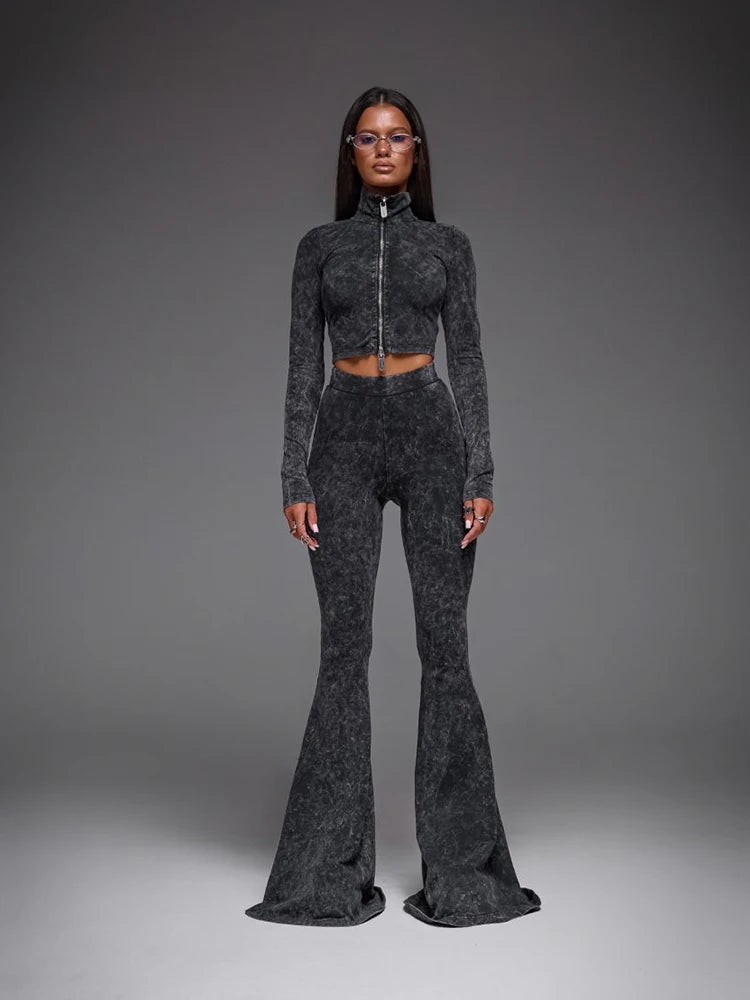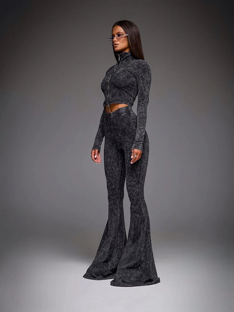 Trendy Sheath Flare Crop Top and Bottoms Set