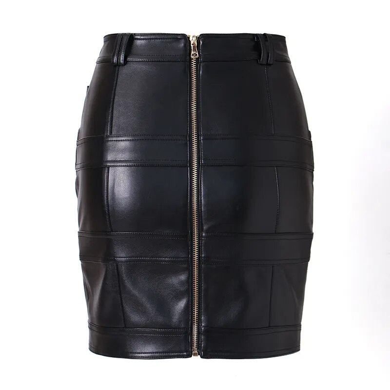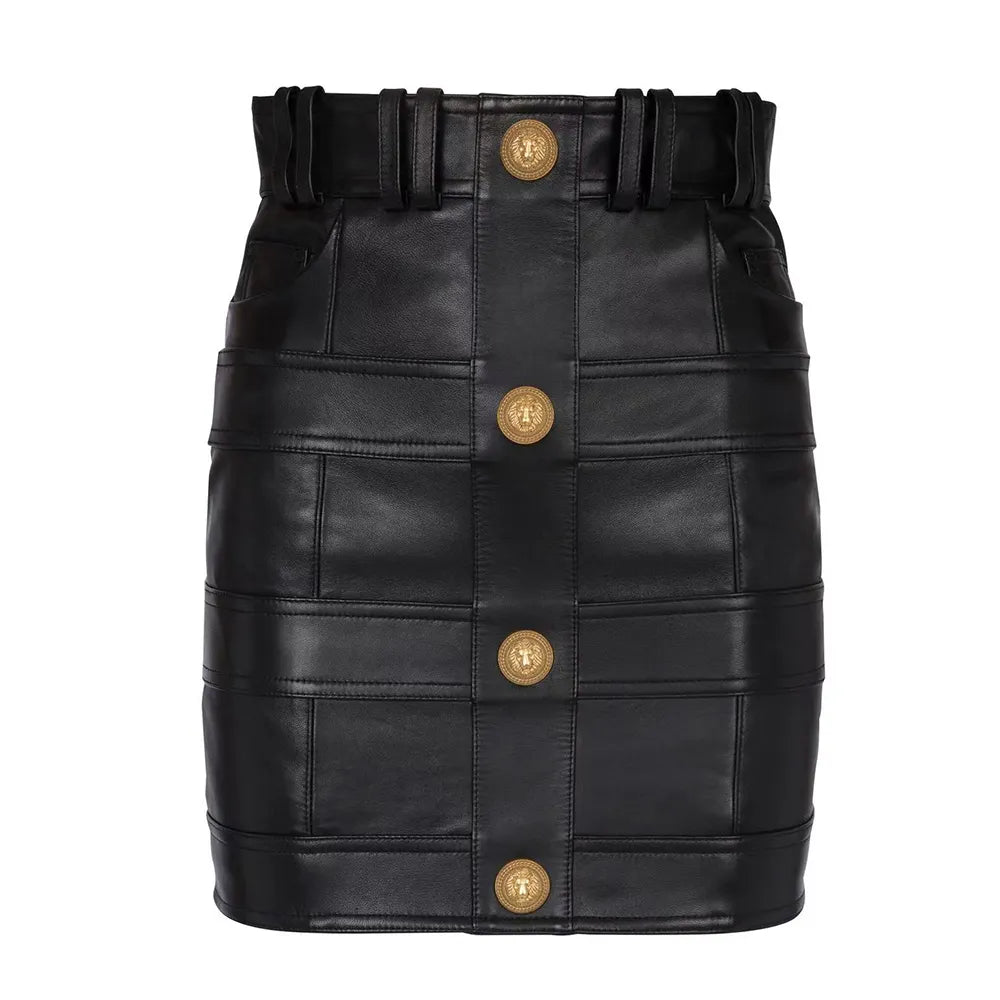 This elegant Trendy Black Plaid High Waist Mini Skirt is crafted from luxurious leather with a straight silhouette, featuring stylish button detailing. Perfect for a date night, this sophisticated piece will showcase your charm and turn heads.