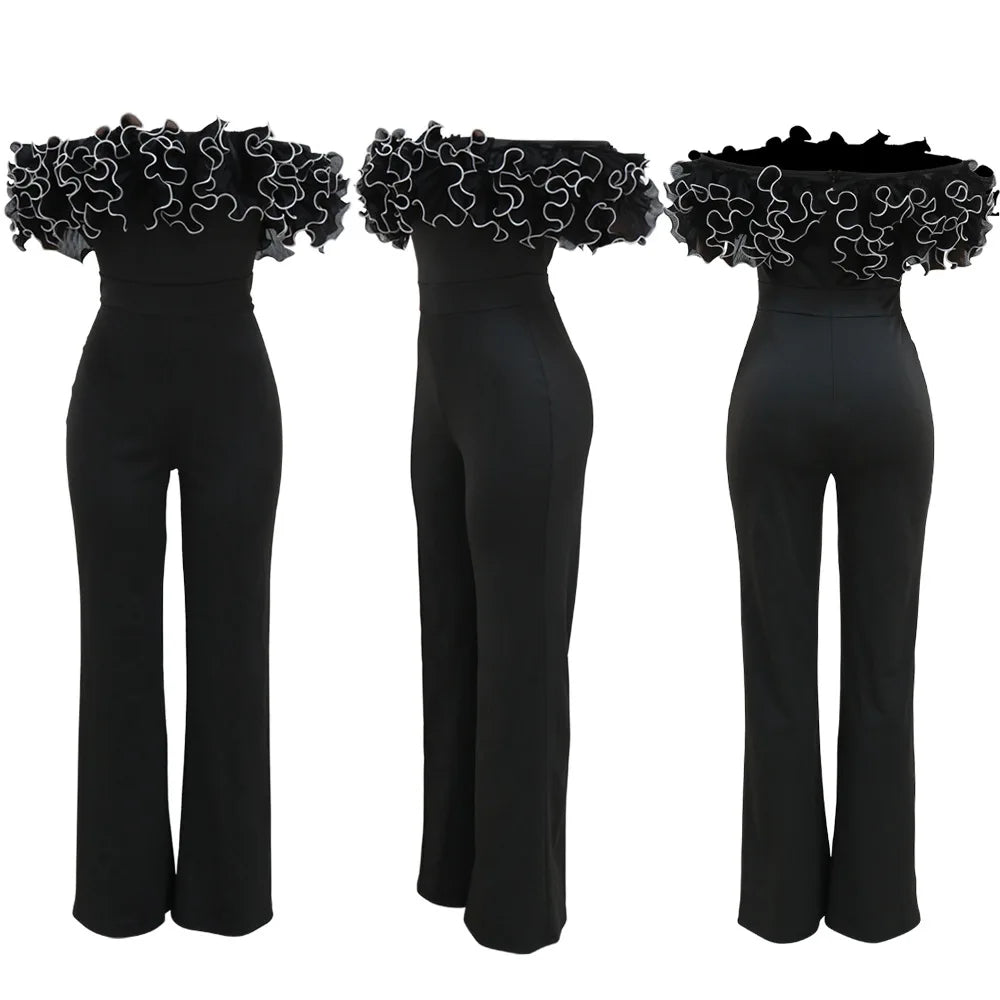 This trendy halter top jumpsuit is perfect for any woman looking for a stylish and comfortable outfit. Made from high quality polyester, it comes in black and white and is available in sizes S-XXL. Whether for everyday wear or special occasions, this jumpsuit will make you feel confident and fashionable.
