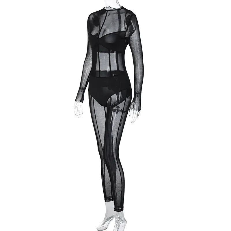 Trendy Mesh Black Lace Long Sleeve Jumpsuit