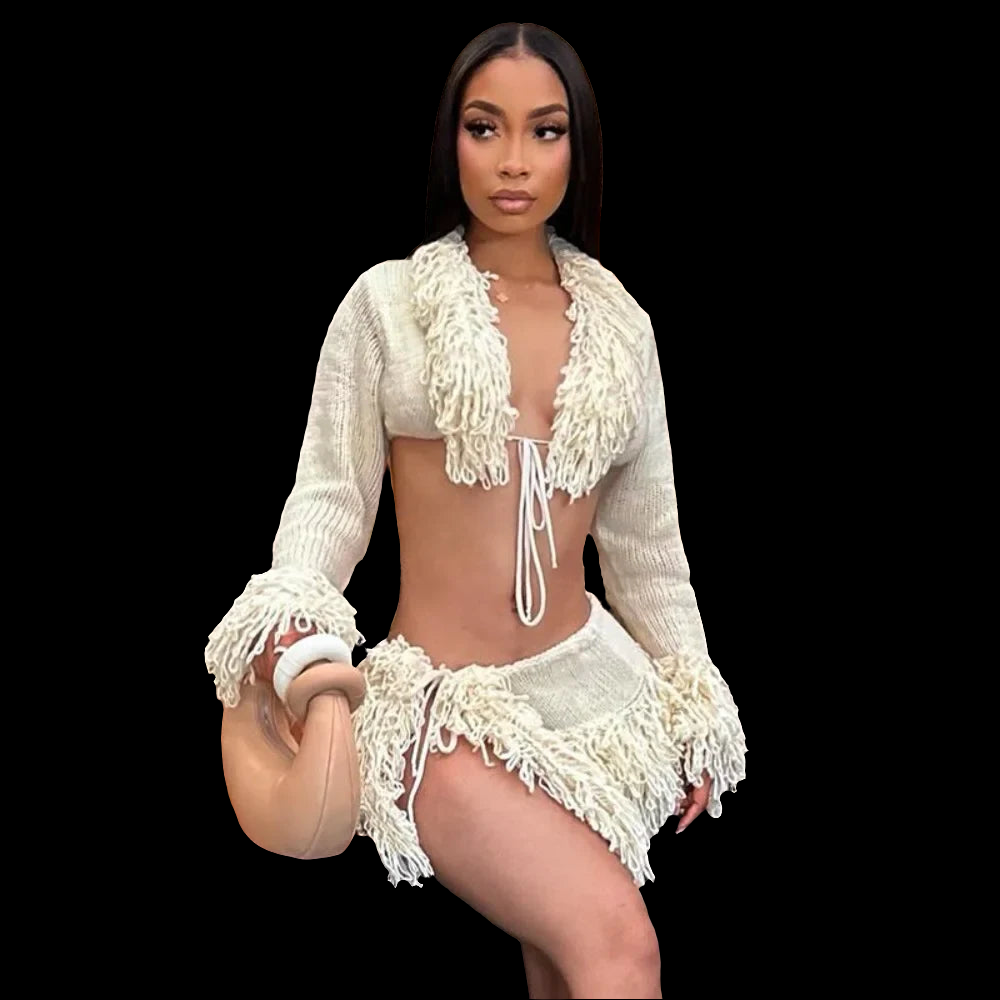 This apricot crop top and bottom set features a flattering V-neck and a sleek sheath silhouette. Made from stretchy polyester and spandex, it offers comfort and a sexy, club-ready look. The backless design and zipper closure add stylish details, while the elastic waist ensures a perfect fit.