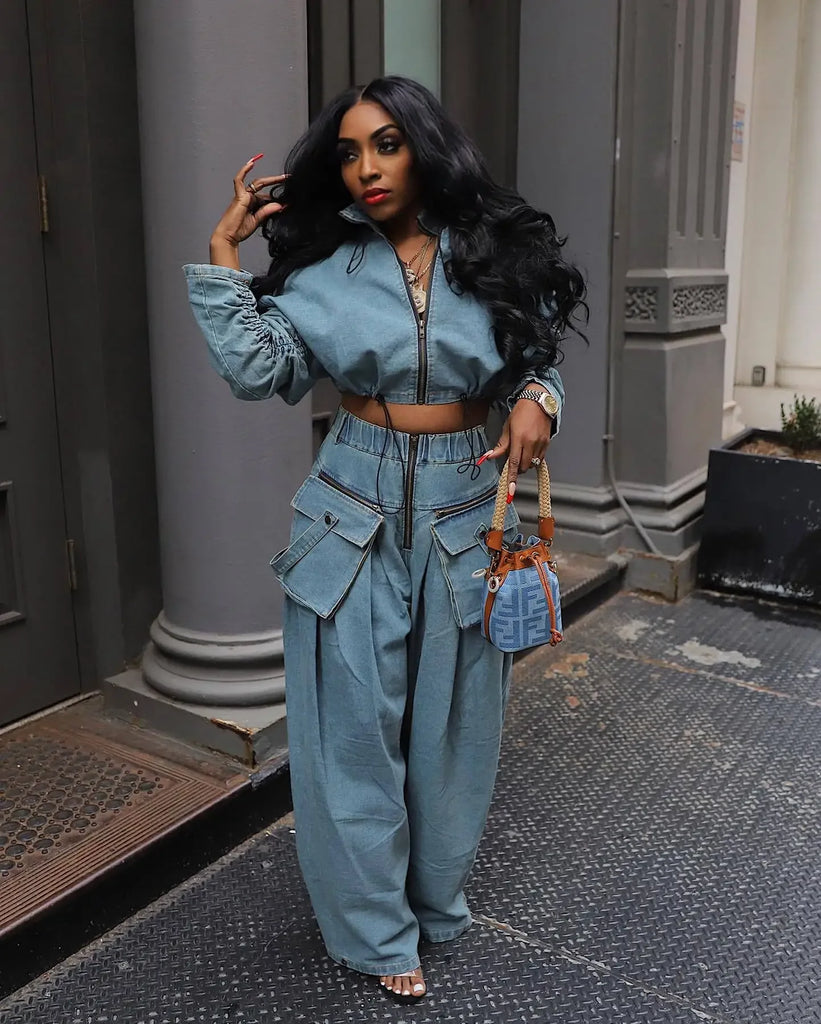 Unleash your inner trendsetter with our Trendy Retro Wide Loose Denim Two Piece Set! Made with high-quality materials like polyester and organic cotton, this casual suit features shirred pleats and a zipper closure for a retro vibe. With a loose fit and plenty of pockets, this set is perfect for autumn and winter. Get ready to turn heads and make a statement with our unique and stylish two piece set!