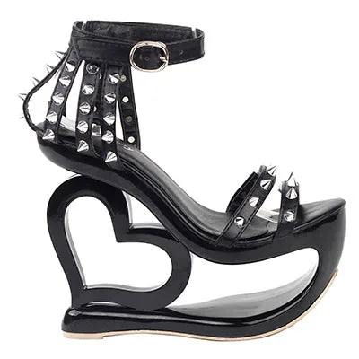 Step out in style and take a bold risk with Trendy Heart Punk Style Wedge Heels! These show-stopping shoes feature a unique, super high heel, platform height for added comfort, and a buckle strap closure to keep you secure. Made with high-quality materials, these heels are perfect for any fashion-forward adventurer.
