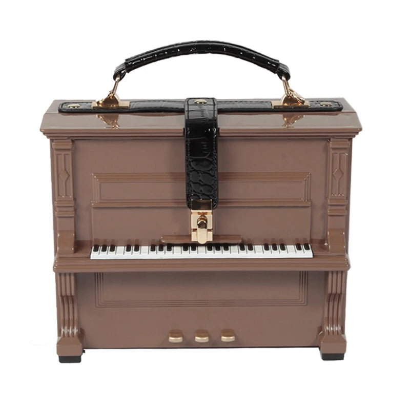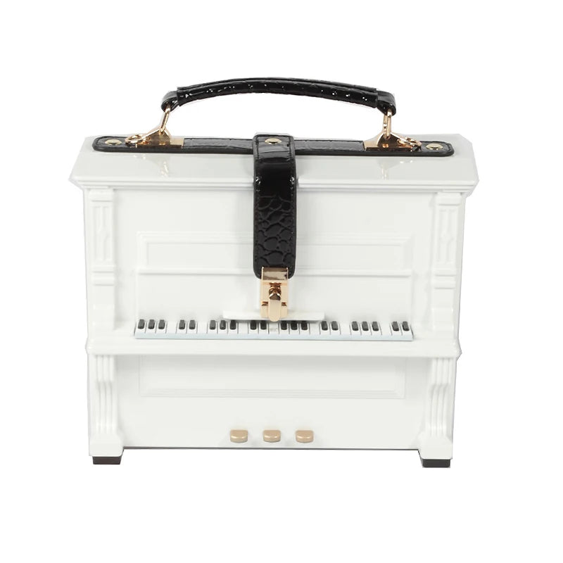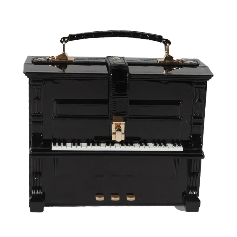 "Be a superstar with this Trendy Piano Acrylic Box Shaped Shoulder Purse. Play up your style with its unique shape and trendy appliques. The hard exterior and secure hasp closure offer protection while the versatile design allows for shoulder or crossbody wear. Perfect for all occasions! (Note: Not actually made of piano material.)"