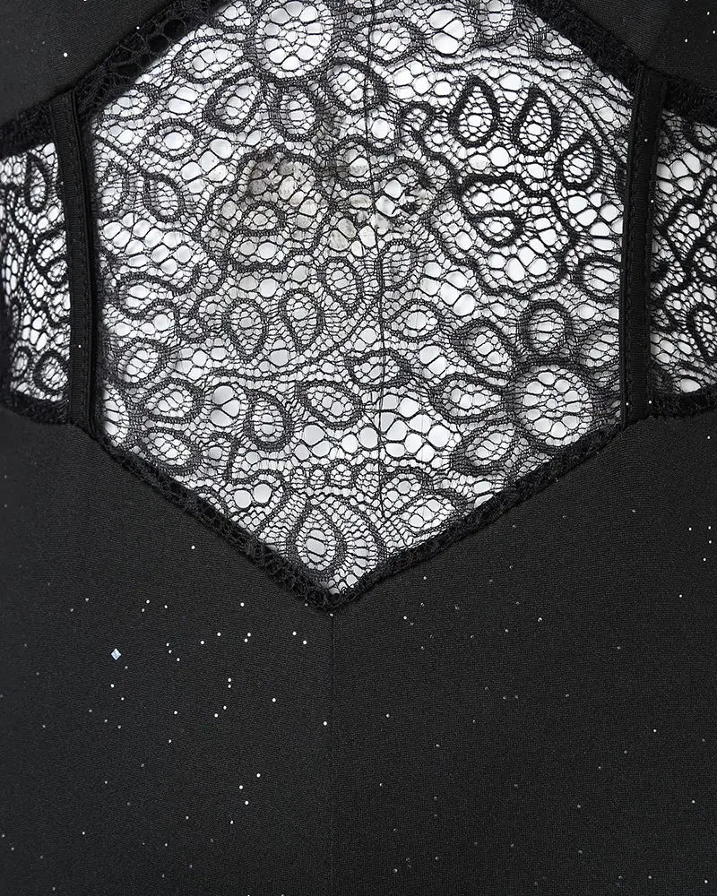 Trendy Glitter Long Sleeve Lace Corset Jumpsuit