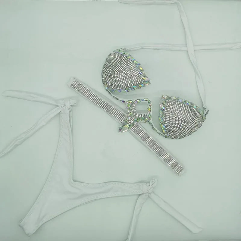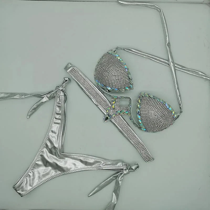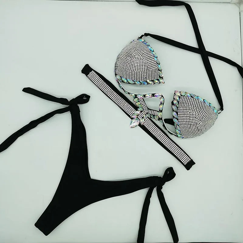 Trendy Rhinestone Bikini Swimwear Set