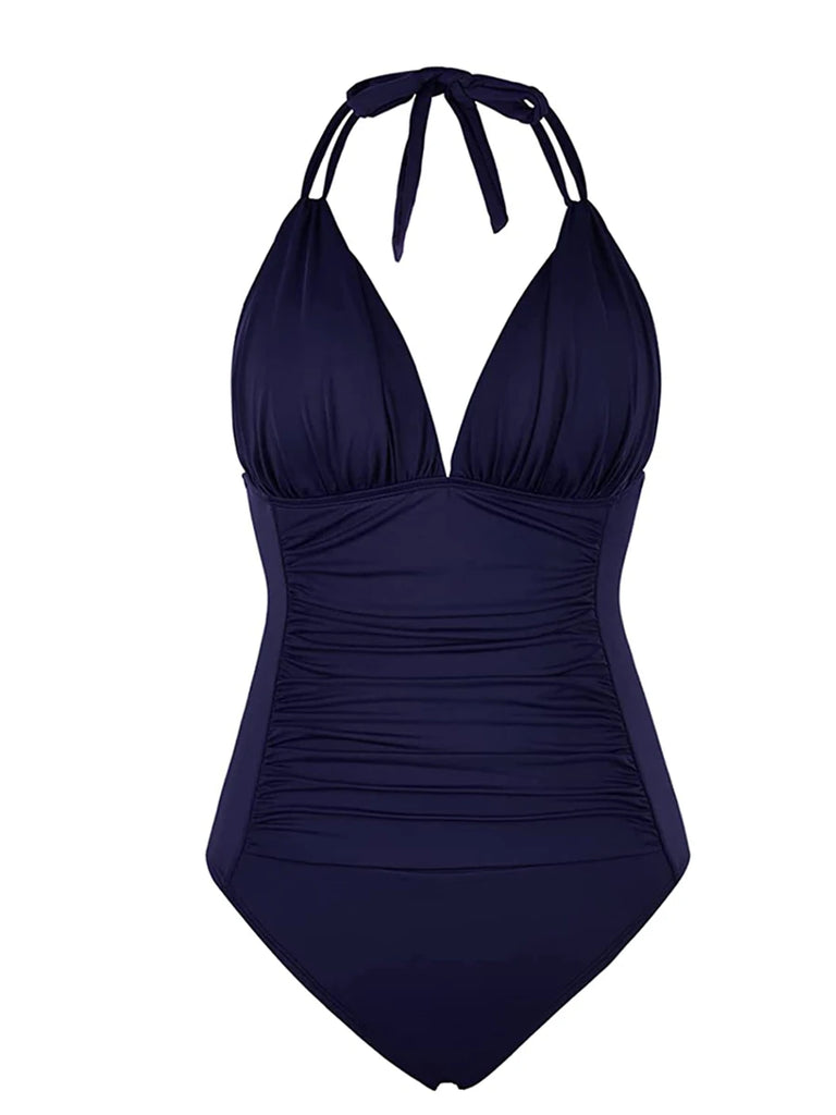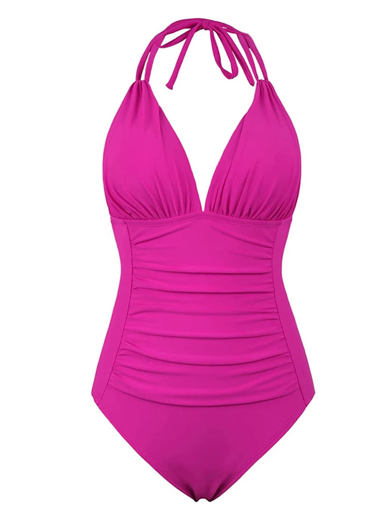 Dare to stand out in our Trendy Halter Backless One Piece Swimsuit! Made of a comfortable polyester and spandex blend, this swimsuit features a bold solid color and ruched detailing for a figure-flattering fit. Embrace your adventurous side and rock this stylish swimsuit on your next beach day!
