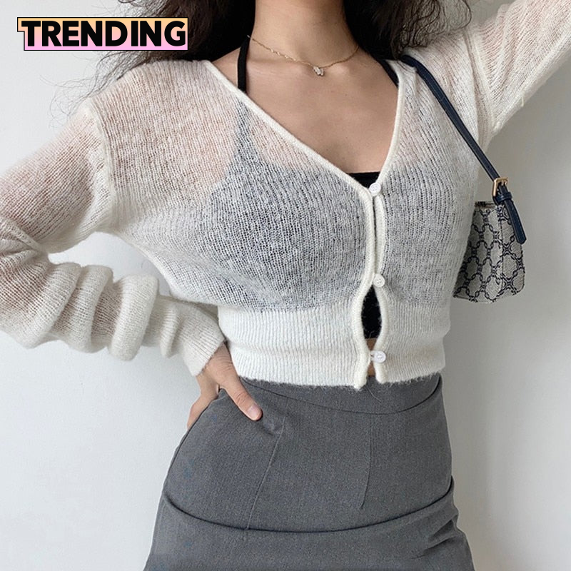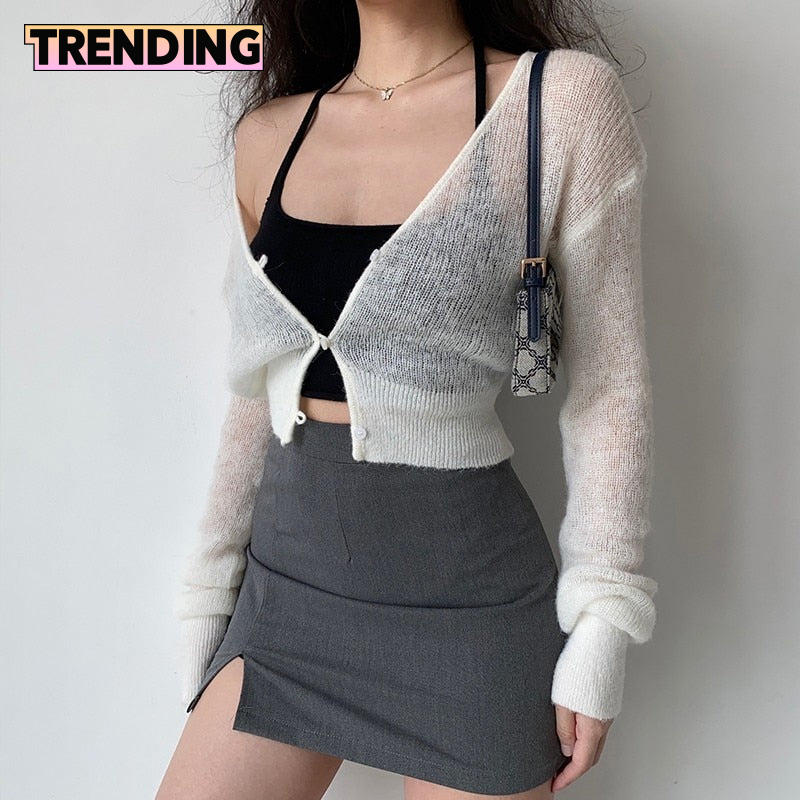 Trendy Cropped Long Sleeve Knitted Cardigan Sweater