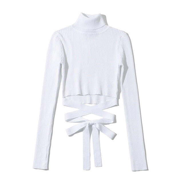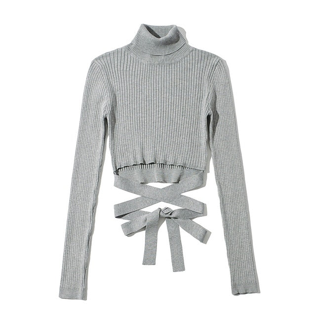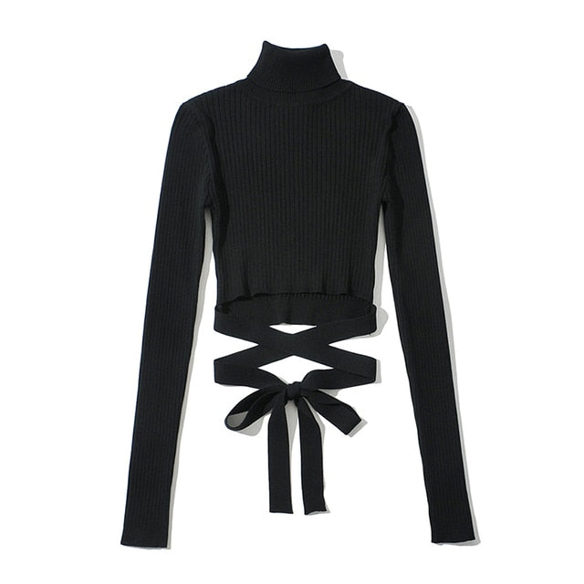 Trendy Turtleneck Bandage Long Sleeve Shirt