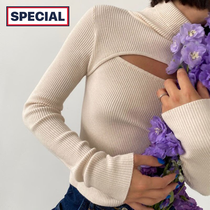 Trendy Knitted Long Sleeve Hollow Out Sweater