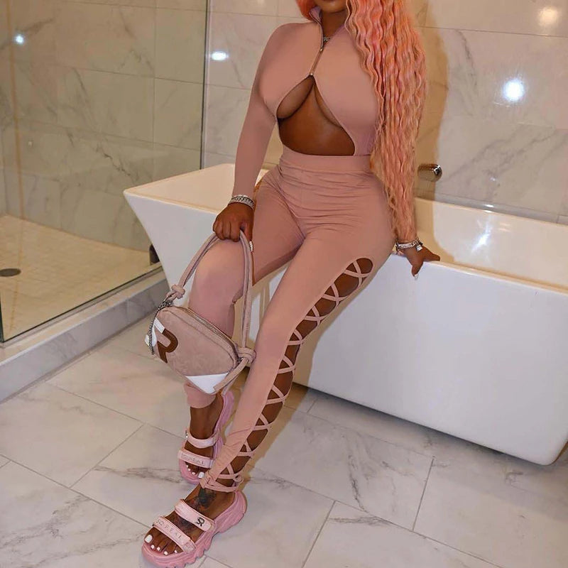 Take a risk with our trendy hollow out crop cardigan jumpsuit! Made with durable polyester material, this jumpsuit is perfect for adventurous autumn and winter seasons. The bold and solid design, combined with a flattering pencil pants pattern, creates an empowering look for women. Available in full length with a fitted, skinny fit.
