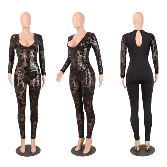 Trendy Black Sequin Long Sleeve Jumpsuit