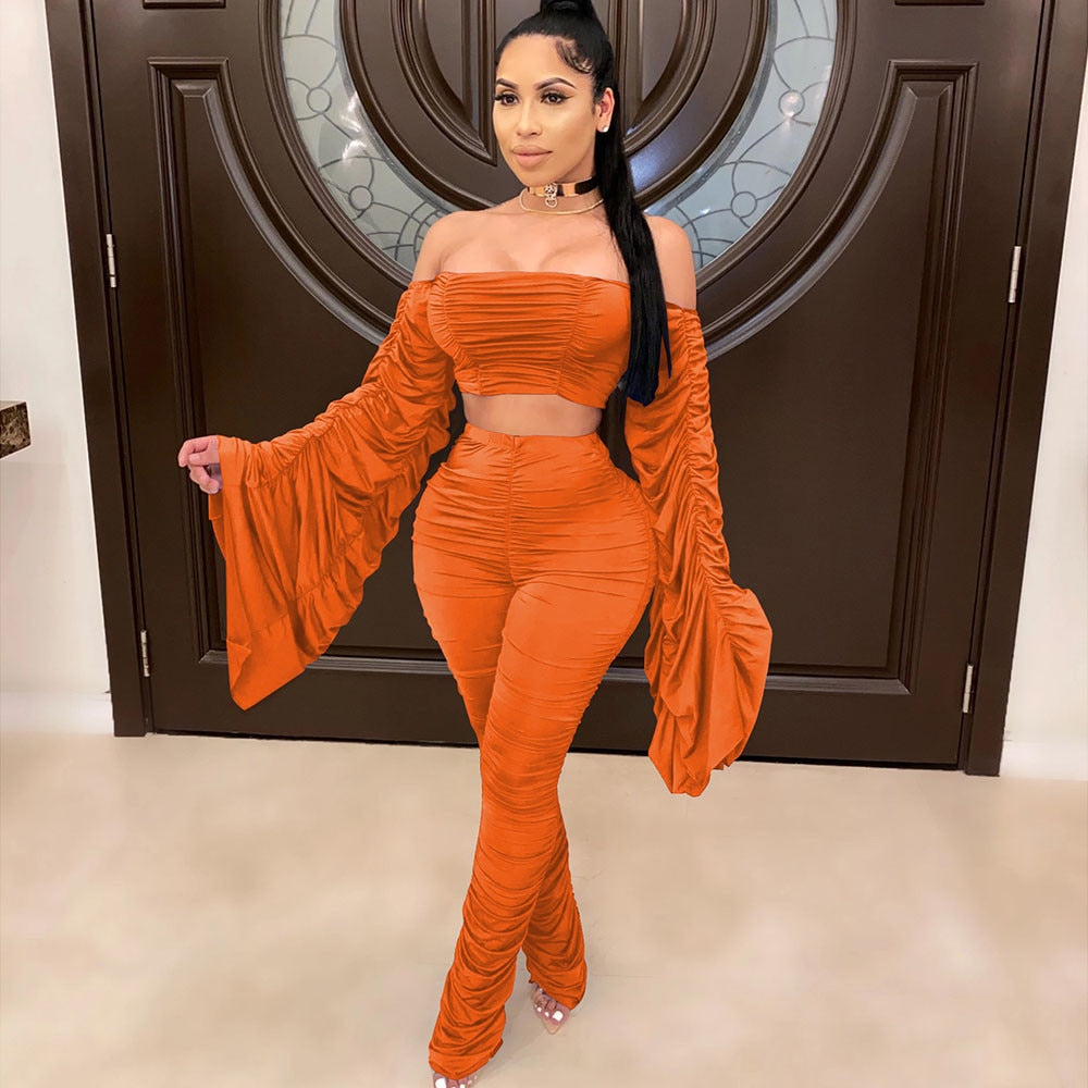 Trendy Two Piece Set Flare Sleeve Crop Top and Jeggings