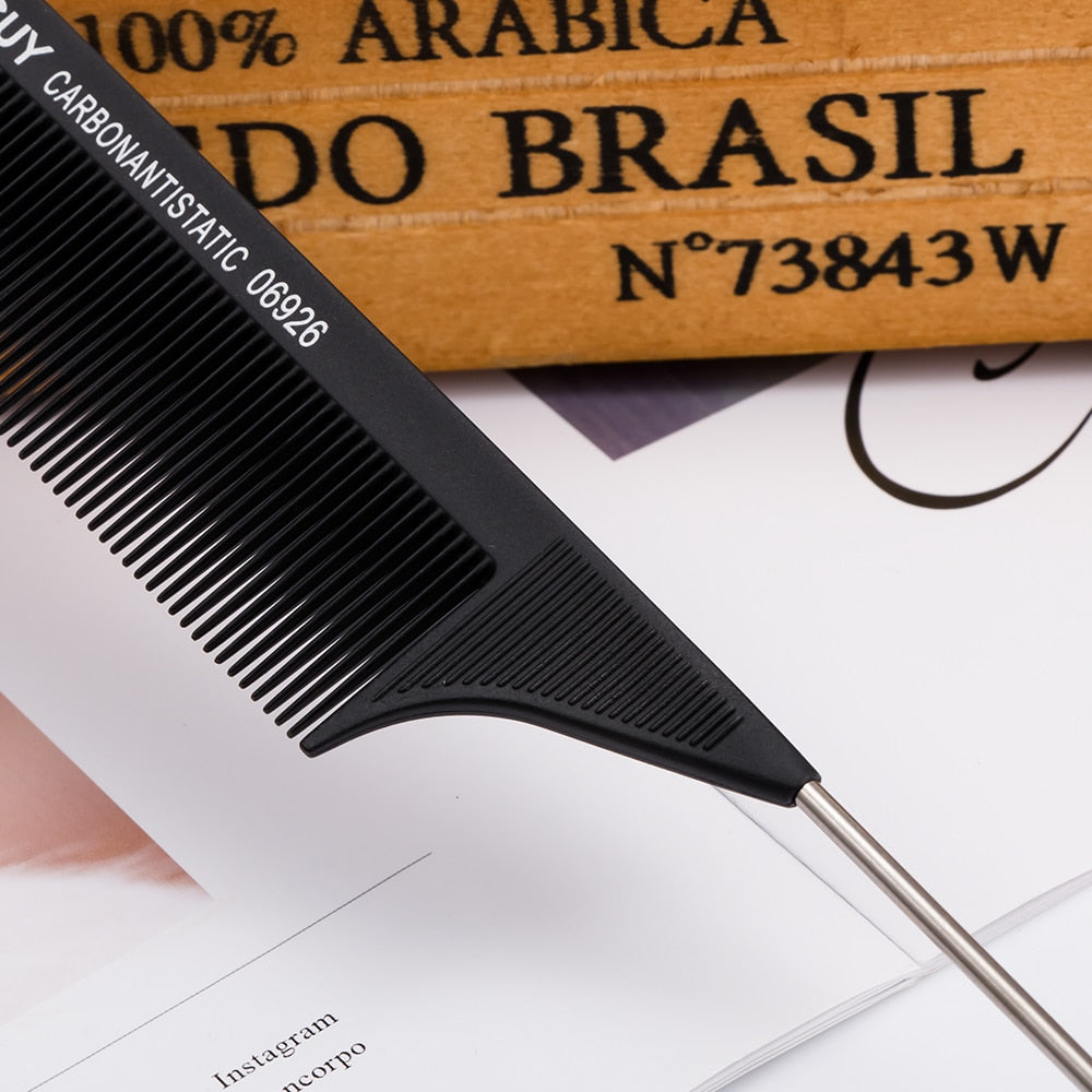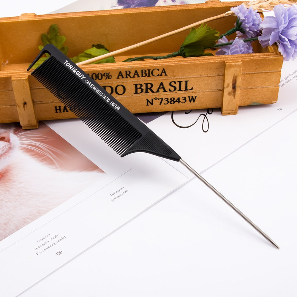 Trendy Black Fine-tooth Metal Rat Tail Comb