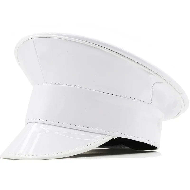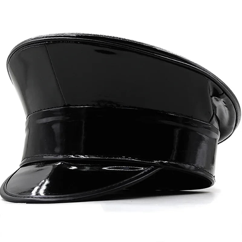 This breathable navy faux patent leather hat adds a bold, casual touch to any outfit, perfect for women seeking style and comfort.