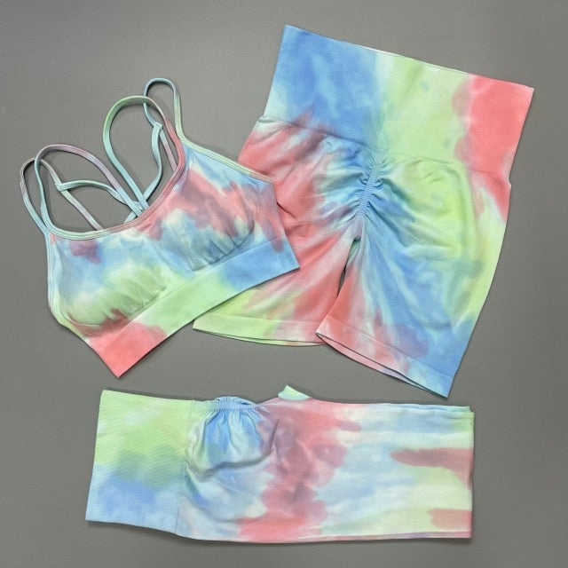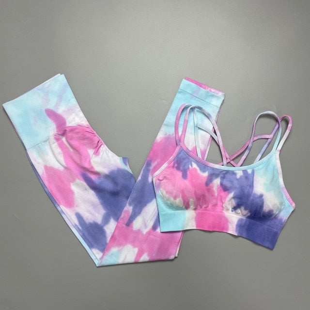 Trendy Tie Dye Sporty High Waist Seamless Leggings And Cropped Bra Set