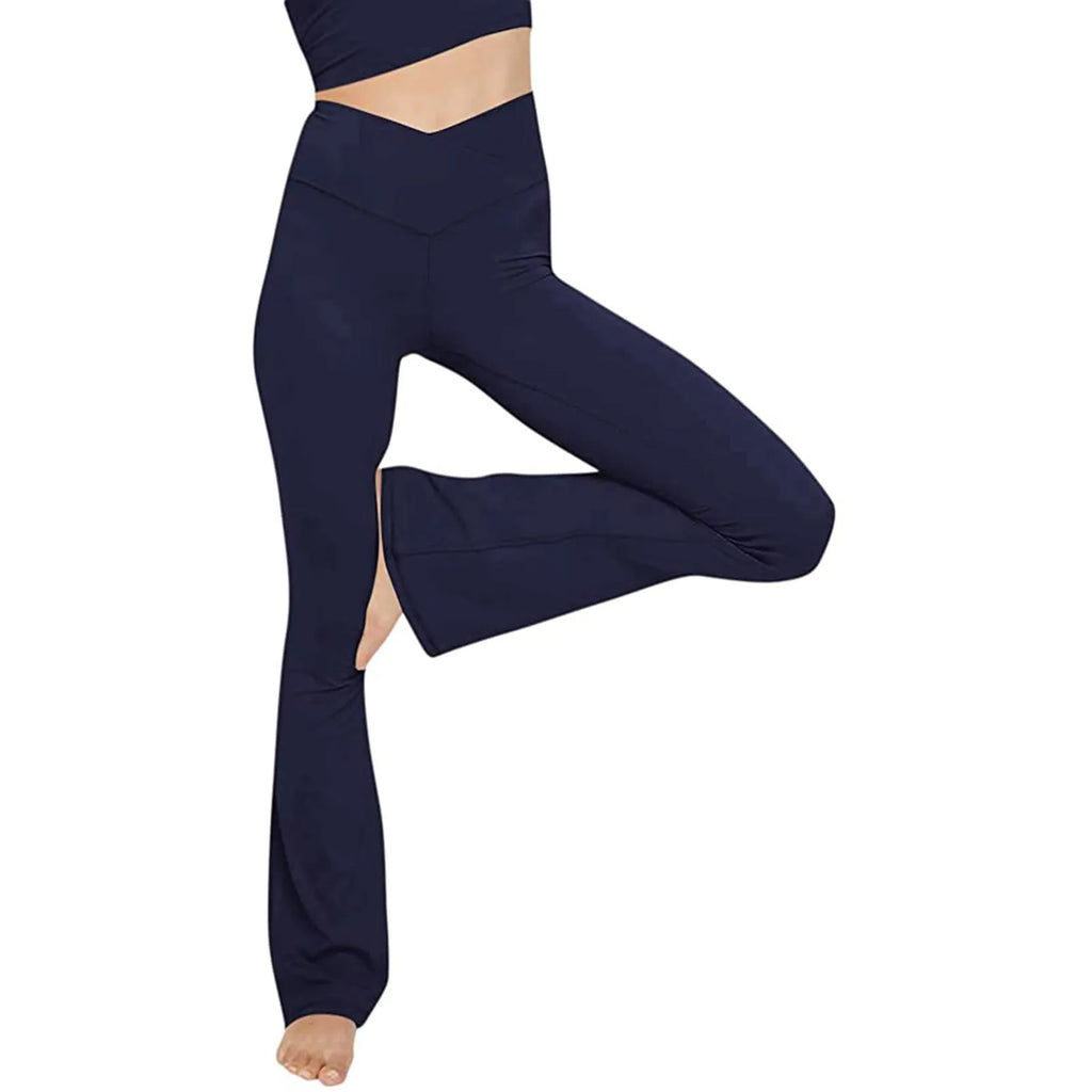 Stay stylish and comfortable during your yoga practice with these Trendy High Waist Flare Pants. The seamless design and standard thickness provide a perfect fit, while the ankle-length and regular hip-style add a flattering touch. Made from high-quality polyester fabric, these pants are perfect for the autumn/winter season. Plus, the solid pattern and broadcloth fabric make for a versatile addition to your workout wardrobe.