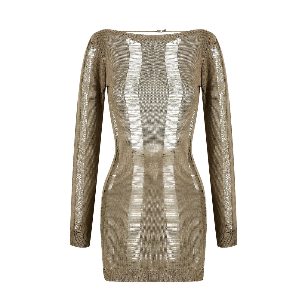 Trendy Knitted Hollow Out Backless Mini Party Dress