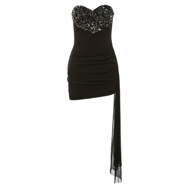 Get ready to turn heads at your next party in this trendy heart-shaped back sequin dress! With its high waist and backless design, you'll feel confident and playful all night long. Made from a blend of polyester and elastic fibers for a comfortable fit. Perfect for adults who love a wrapped chest style.