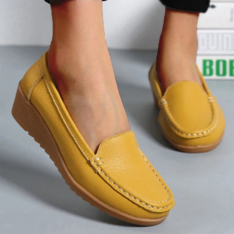 Make a statement with these sophisticated leather penny loafers. Split leather uppers deliver timeless elegance with a modern edge, while the subtle heel adds lift and attitude. Round toe design ensures all-day comfort, and the rubber sole keeps you grounded. True-to-size fit means you'll slip them on and own the room. Casual sophistication redefined.