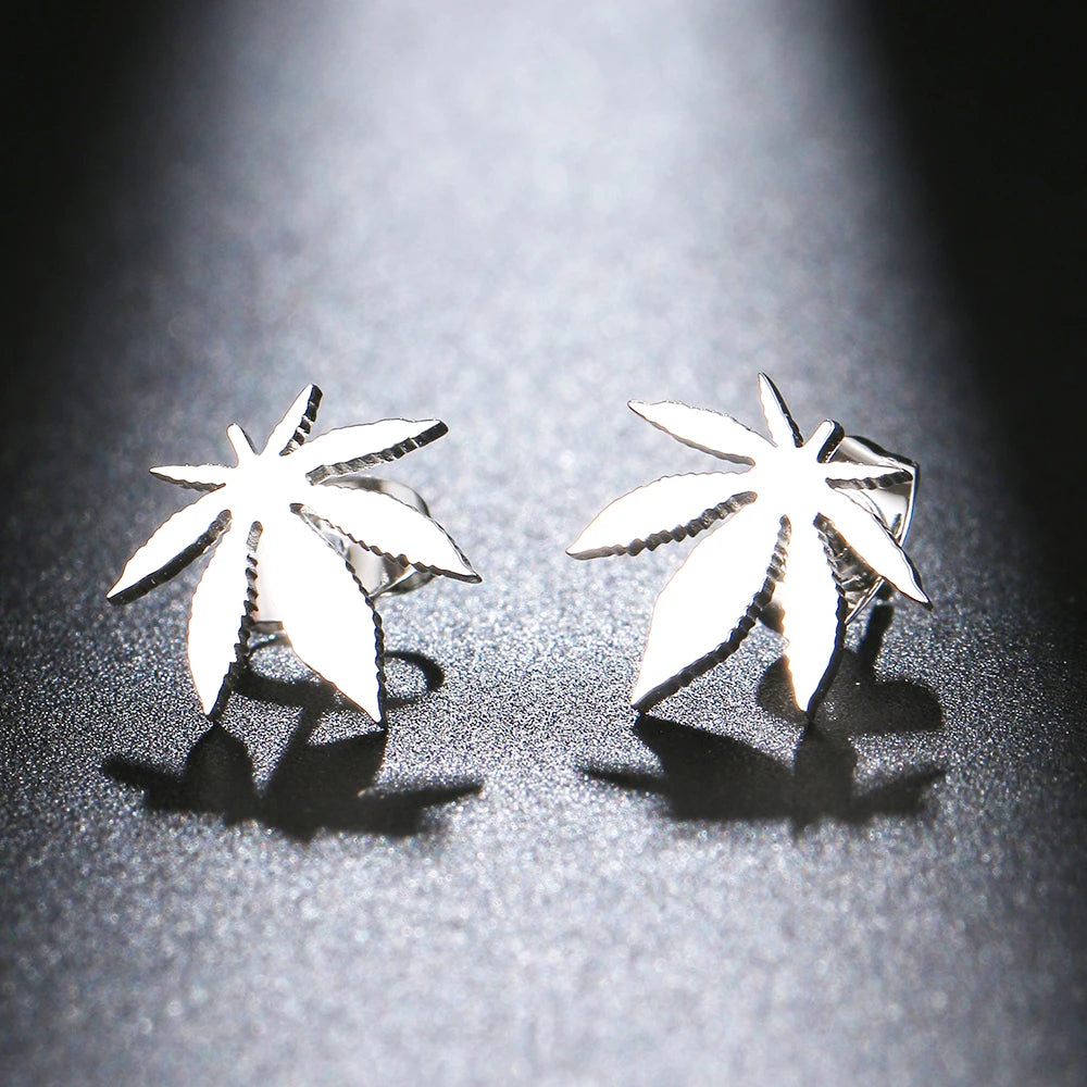 Trendy Stainless Steel 420 Leaf Stud Earrings
