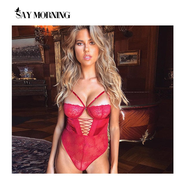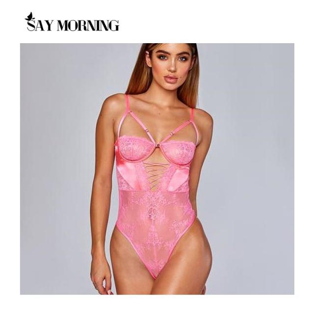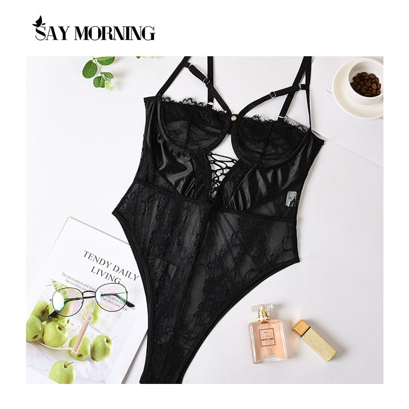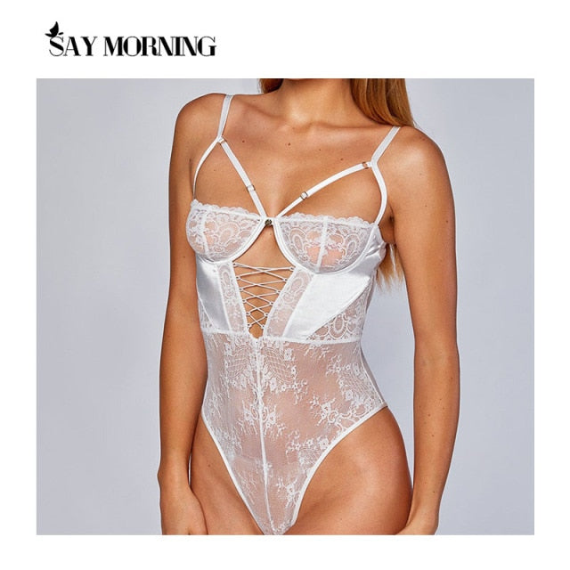Trendy Lace Backless Cut Sleeveless Mesh Bodysuit
