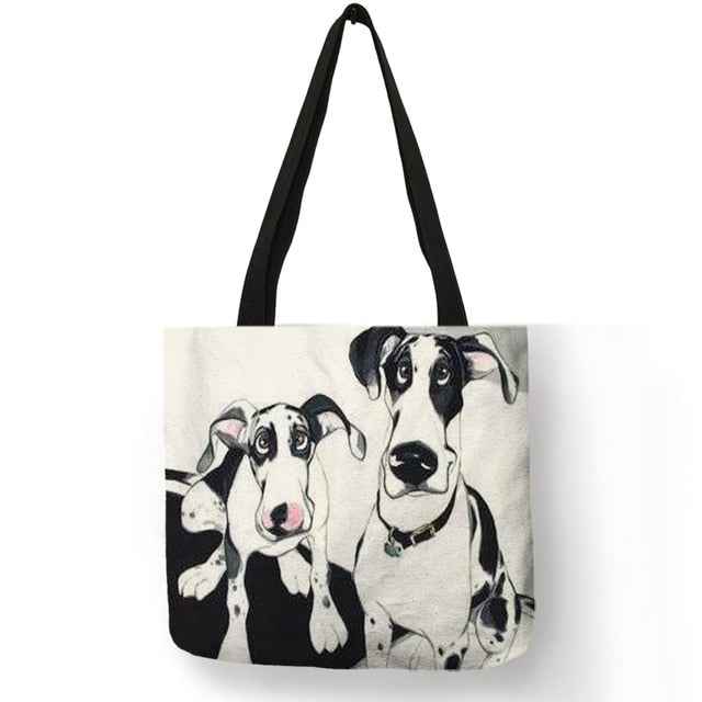 Trendy Dog Printed Casual Fabric Tote Handbag